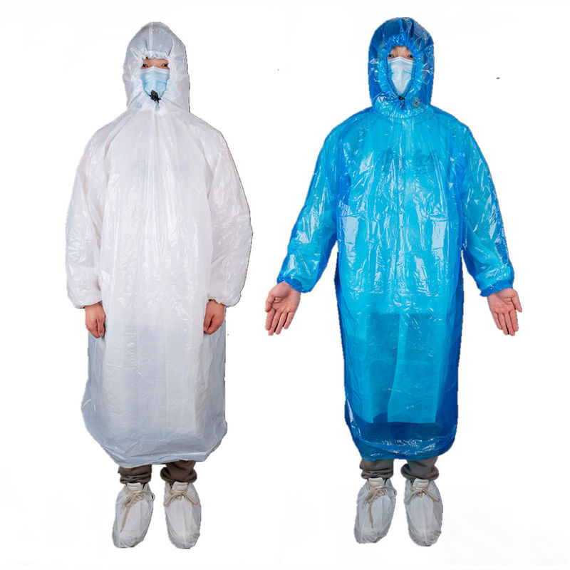 জলরোধী পিই ডিসপোজাল প্রোটেকশন গাউন, স্বচ্ছ ডিসপোজাল পঞ্চো রেইনকোট