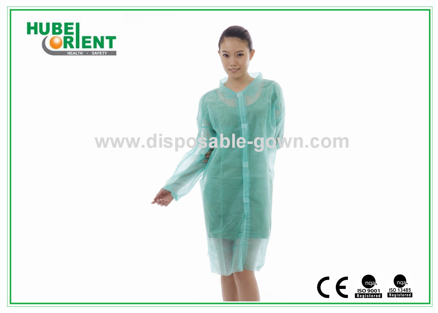 নাইলন ফাস্টেনার টেপ বন্ধক সহ সবুজ ননউভেন ডিসপোজেবল ল্যাব কোট |