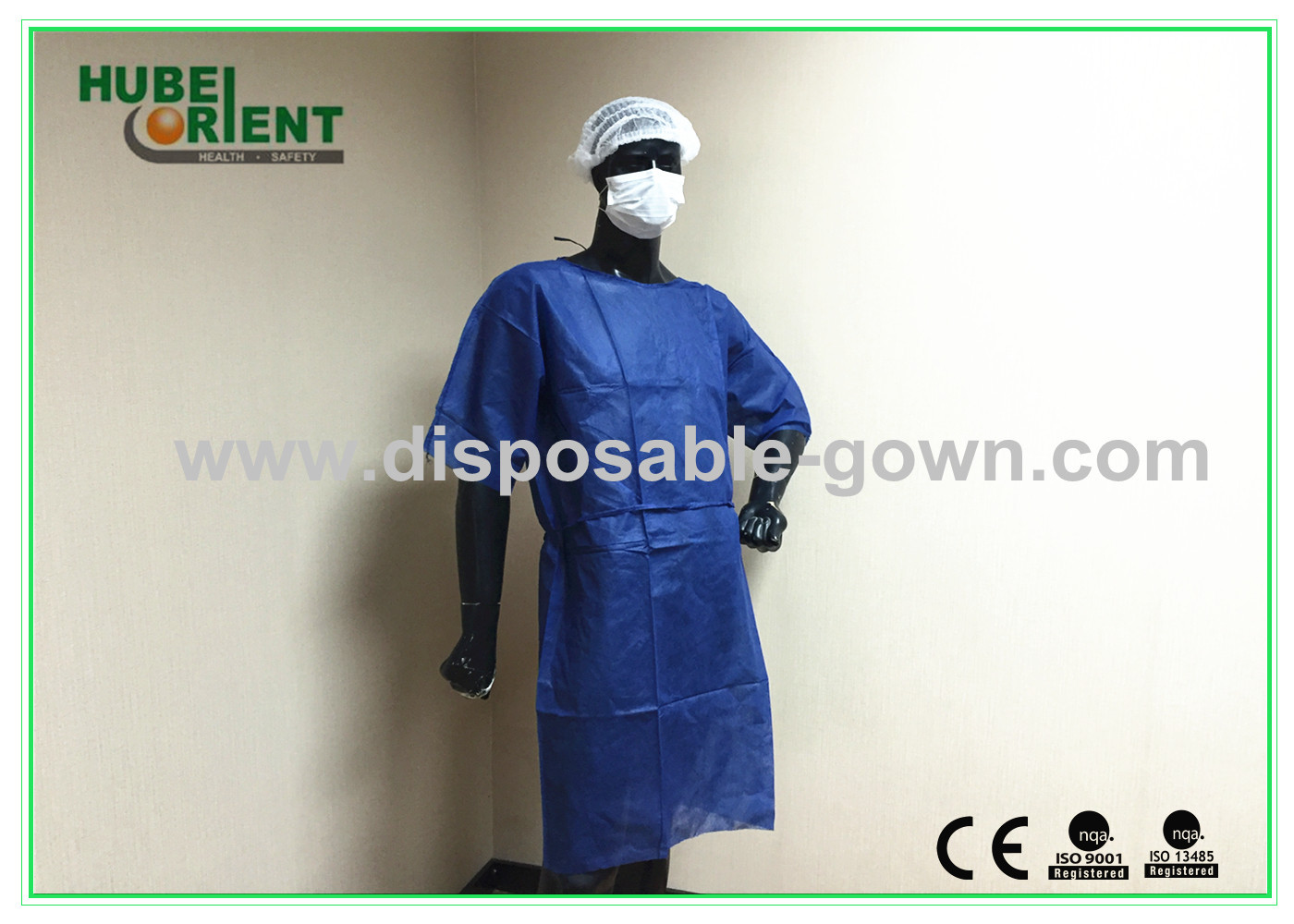 সংক্ষিপ্ত হাতা একক ব্যবহারের আইসোলেশন গাউন/অন্ধার নীল একক ব্যবহারের রোগীর গাউন