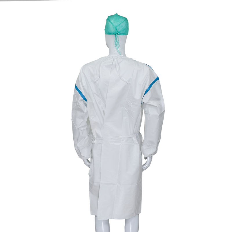 আল্ট্রাসোনিক তাপ সীলমোহর এককালীন জলরোধী স্তর-২ মেডিকেল এসএমএস আইসোলেশন গাউন