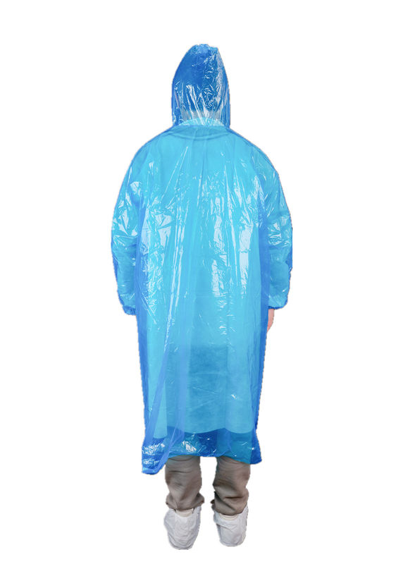 জলরোধী এককালীন ব্যবহার স্বচ্ছ পিই প্লাস্টিকের রেইনকোট লম্বা হাতা এবং হুড সহ ক্যাম্পিং / আউটডোরের জন্য