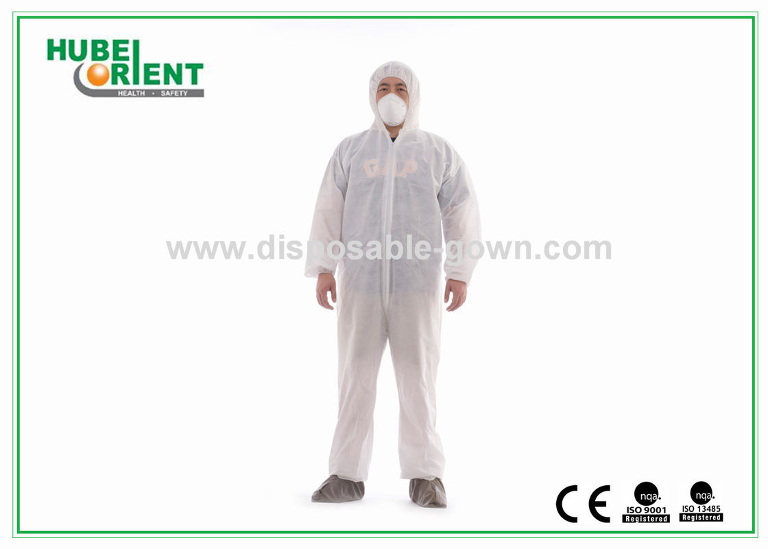 পেশাদার পিপি / এসএমএস / এমপি রাসায়নিক প্রতিরোধী কোভারলস পোশাক হুদ এবং ফুট কভার সহ পরিবেশ বান্ধব