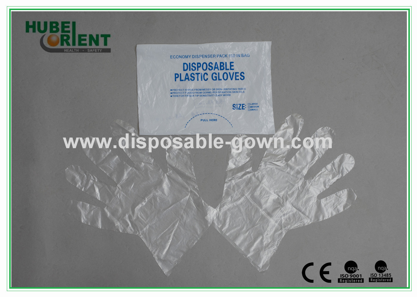 খাদ্য-যোগাযোগ সরাসরি ব্যবহারযোগ্য পিই গ্লাভস জলরোধী বিনামূল্যে আকারের প্লাস্টিকের গ্লাভস