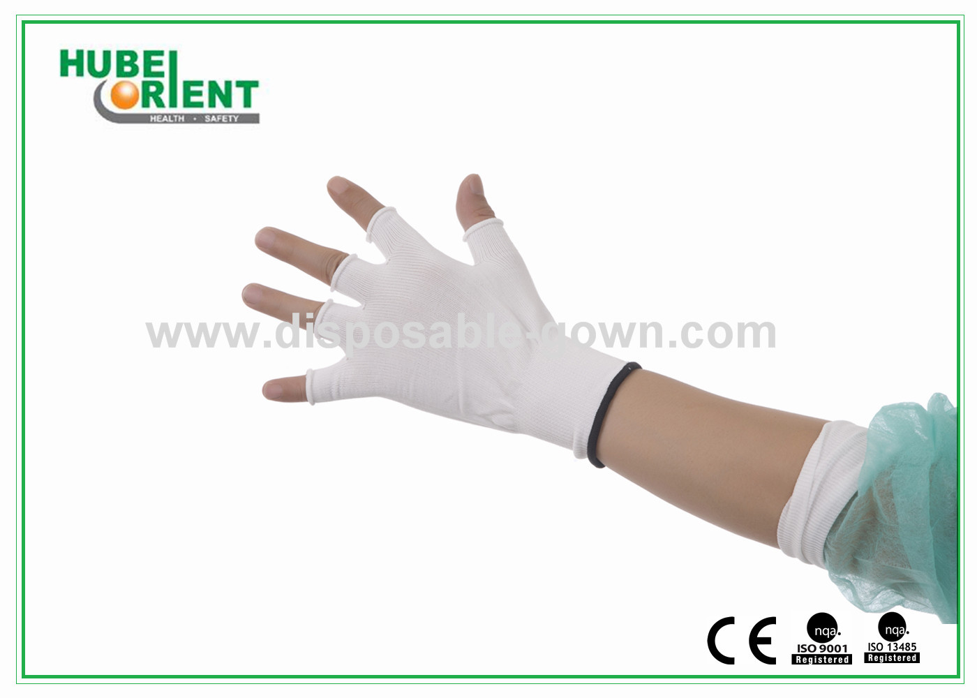 ১০০% নরম নাইলন ডিসপোজেবল হাফ-ফিংগার গ্লোভস সাদা রঙ, ১৬৫ গ্রাম/মি২