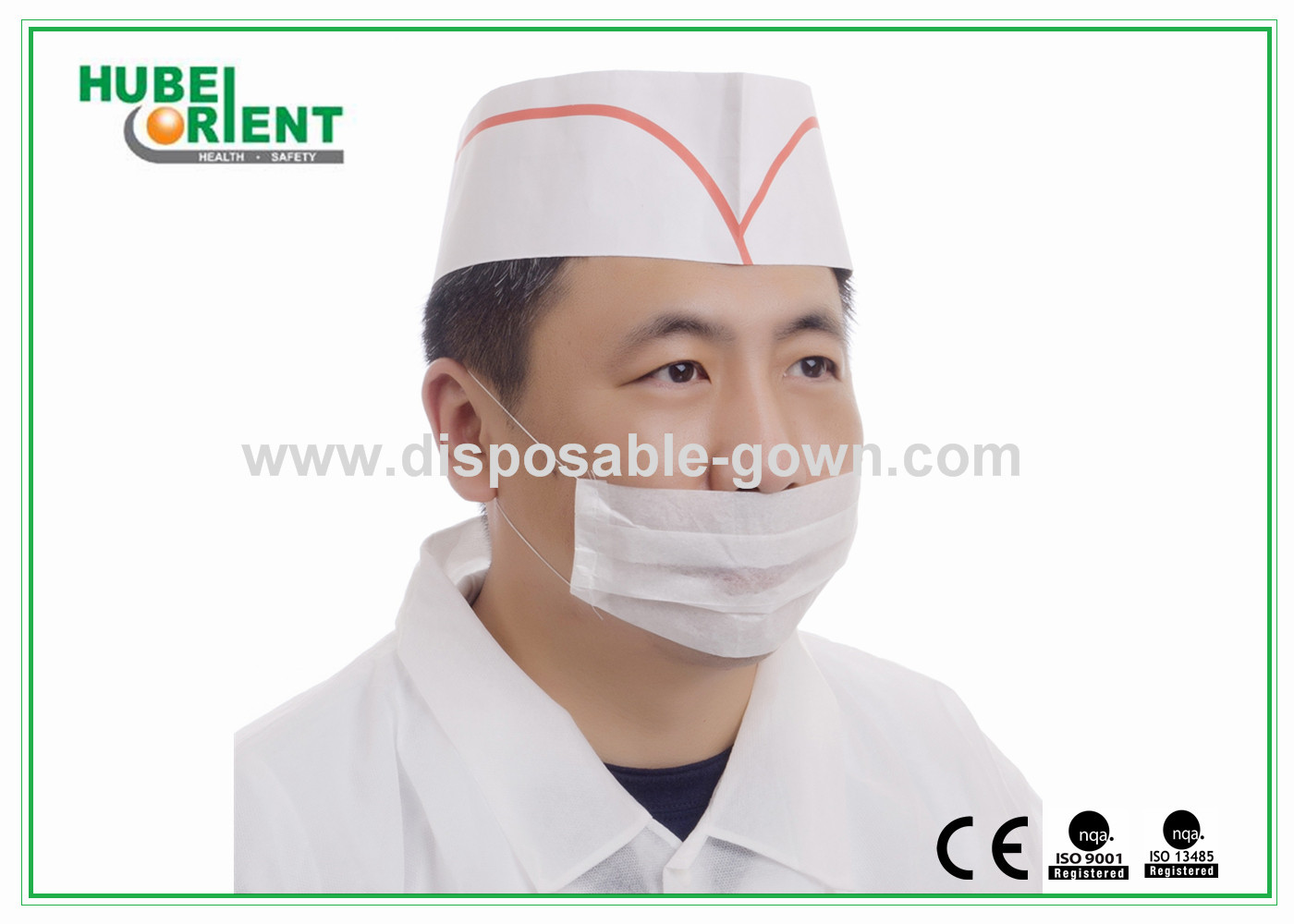 ফ্যাশন হোয়াইট প্রিন্টড ডাইসপোজাল সার্জিক্যাল হ্যাটস রঙিন স্ট্রিপ সহ