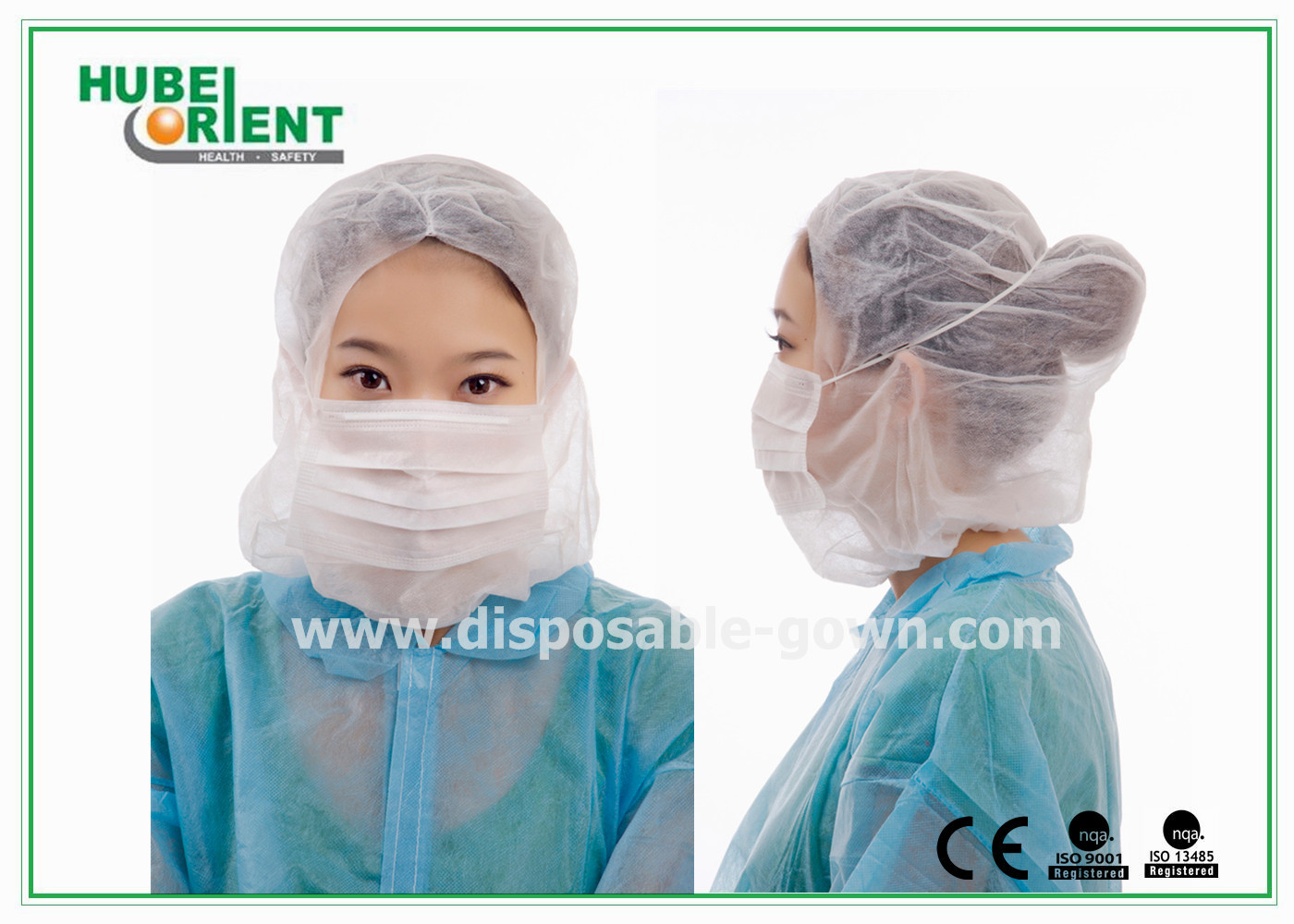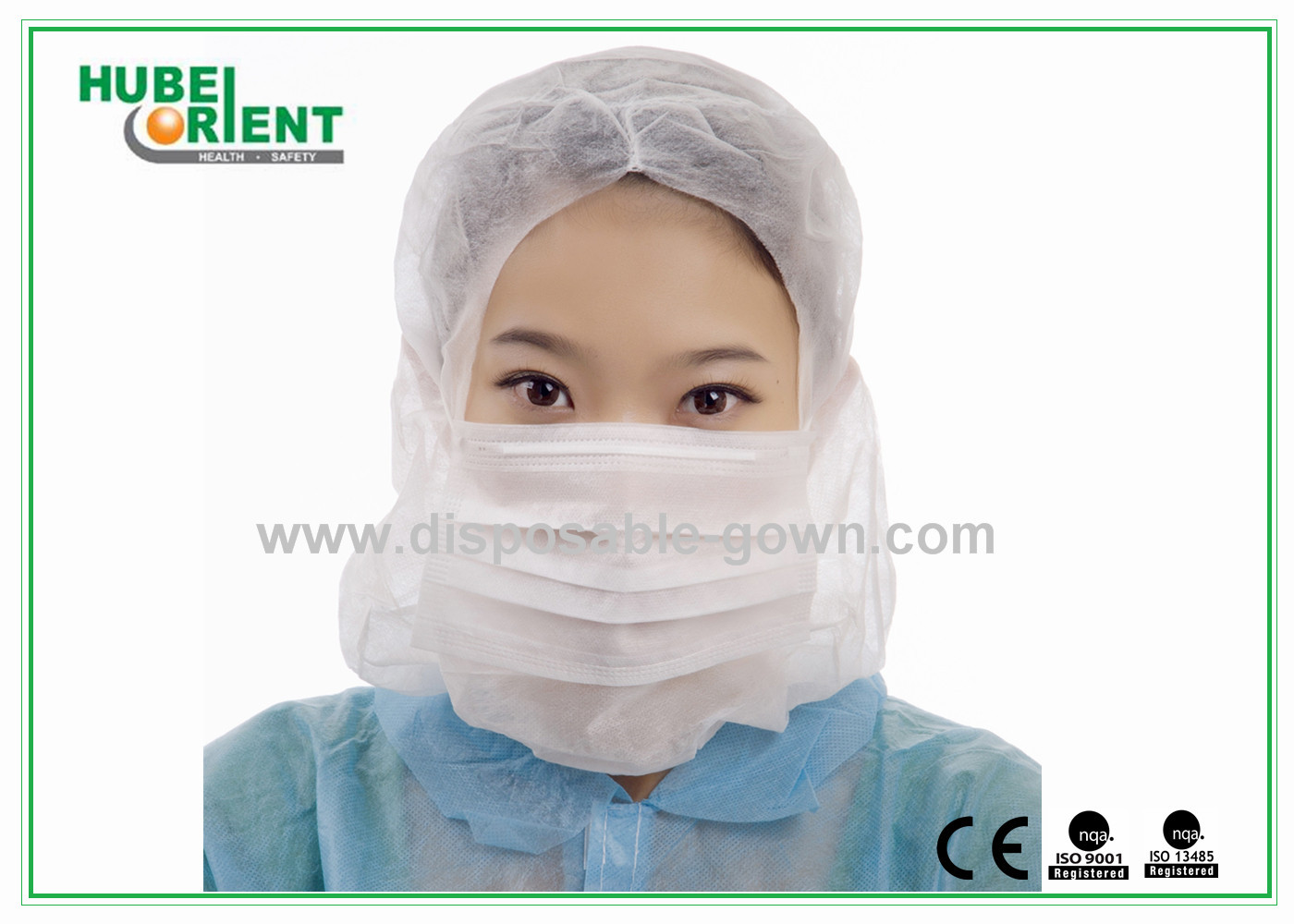 ক্লিনরুম এবং খাদ্য শিল্পের জন্য 3ply ফেস মাস্ক সহ ডিসপোজেবল ননউভেন হুড, রঙ, আকার, ওজন এবং প্যাকিং কাস্টমাইজ করা যায়।