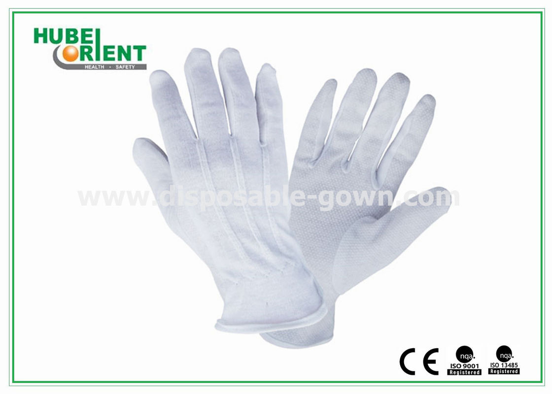 ইকো-বন্ধুত্বপূর্ণ এককালীন ব্যবহারযোগ্য 100% নরম বিশুদ্ধ কটন গ্লাভস পিভিসি বিন্দু সহ সাদা রঙ